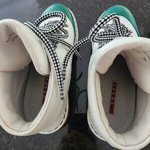Prada White / Emerald Green Colorblock Leather Lace-Up Hiking Boots