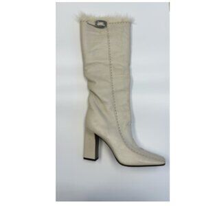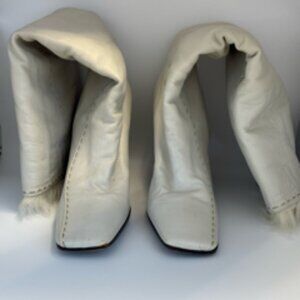 Prada White Leather Tall Fur Trim Boots 38.5 (US 8.5)