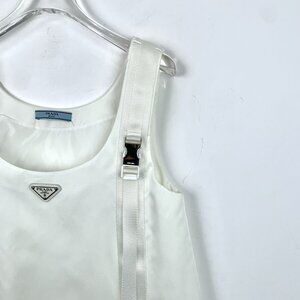 Prada White Re-Nylon Sleeveless Halter Dress With Signature Triangle Logo