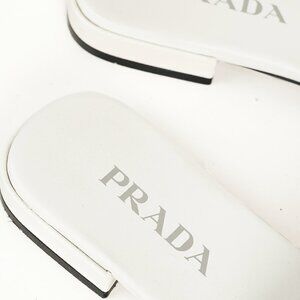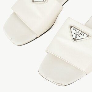Prada White Saffiano Leather Logo Slide Sandals