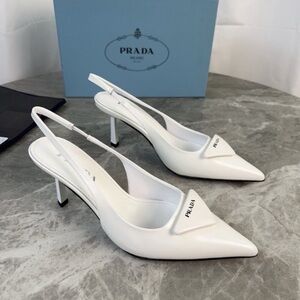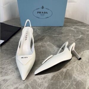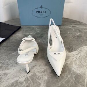Elegant and stylish, these Prada white slingback heels are perfect for any occasion. Crafted with precision, they offer both comfort and sophistication.