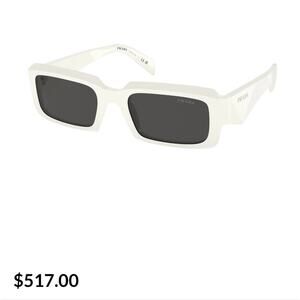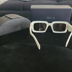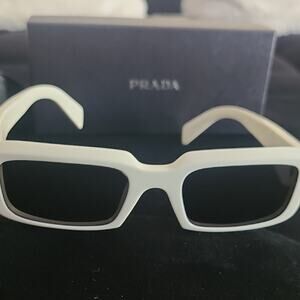 Stylish Prada sunglasses. White frame with black lenses. Modern and sleek design. They look brand new but I cannot 100% confirm that. They look brand new though.