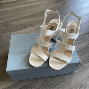 Prada White Box Patent Caged 85mm Sandals