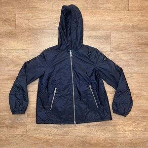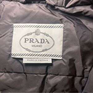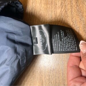 Experience the perfect blend of style and functionality with this Prada black windbreaker. Crafted from lightweight, water-resistant material, it features a sleek design with a high collar and elastic cuffs, making it ideal for breezy days.