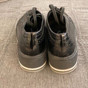 Prada Wingtip Platform Leather Oxford Platform Shoes, Black, Size 37