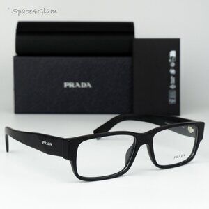 Prada Women Eyeglasses Matte Black Clear Rectangle PRB09V 12P1O1 NEW AUTHENTIC