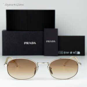Prada Women Sunglasses Silver Yellow Gradient Brown Oval PRB53S 1BC80K NEW AUTHENTIC