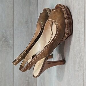 Prada Women Vintage Y2K Brown Peep-Toe Slingback Heels Shoes Sz 40/10