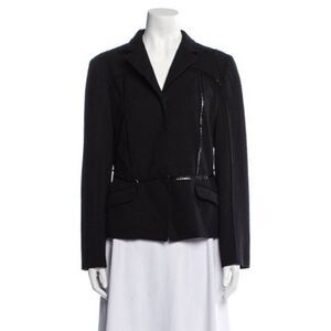 Prada Womens Authentic Vintage 100% Wool Crop solid black Blazer Jacket 48 Large