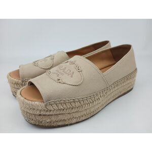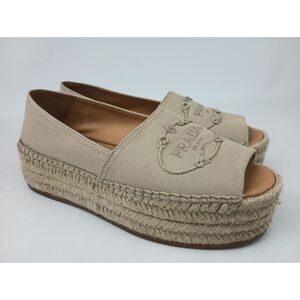 Prada Women's Beige Platform Espadrilles Sandals Flats Size 37.5
