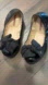 Stylish black flats with a charming bow. Crafted by Prada for elegance.
