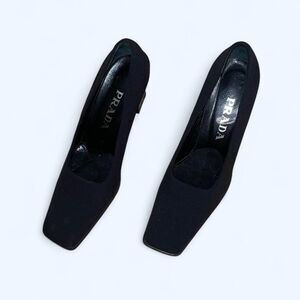 Black Prada square toe pumps. the classic prada square toe is so iconic! size 38. there are toe inserts that are removable. stamped with vera cuoio. a staple pair of black heels in any wardrobe!