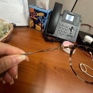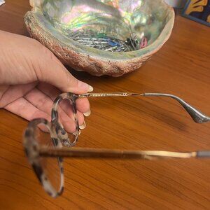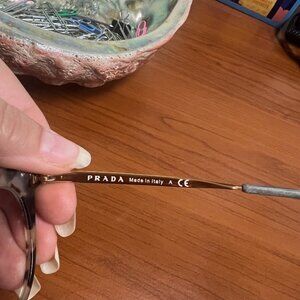 Stylish Prada glasses with a tortoise shell frame. Pink accents on the temples. Perfect for a chic look.