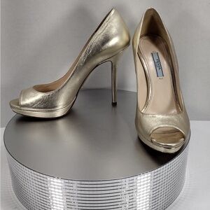 Prada Women's Gold Peep-Toe Heels pre owned Exellent condition size 8.5