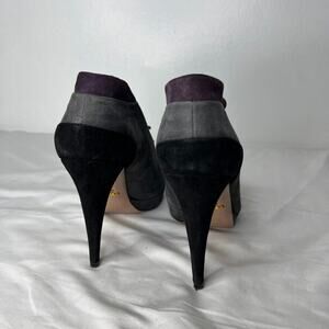 Prada Women's Gray Suede Lace-Up Booties Size 37.5 Italy High Heel Platform