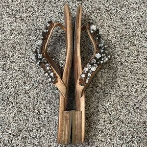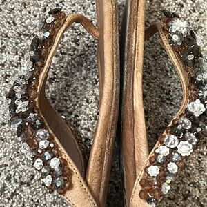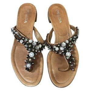 Prada Women's Leather Tan and Brown Beaded Sandals size EU 38 US 8