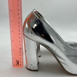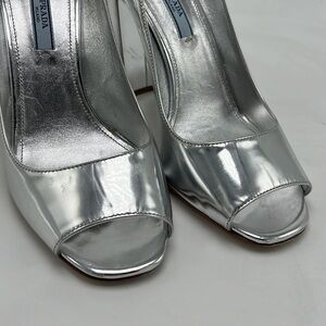 Prada Women's Metallic Chrome Silver Leather Open Peep-Toe Pumps size 7