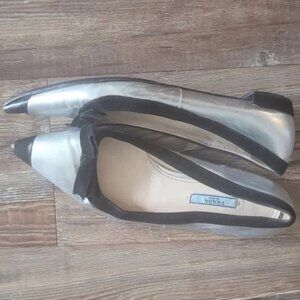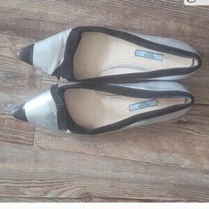 Prada Women's Metallic Silver and Black Flat. Size 38.5.