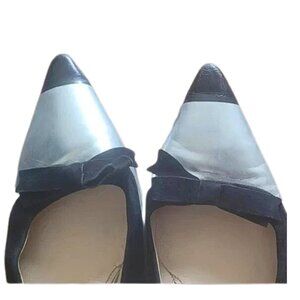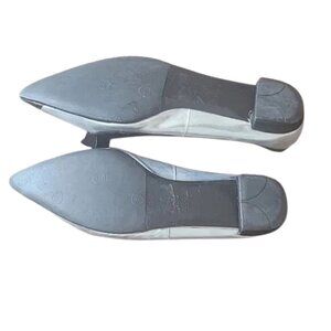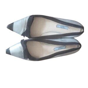 Prada Women's Metallic Silver and Black Pointed Flats. Size 8.5