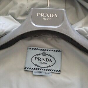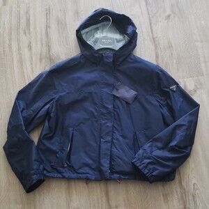 Prada Womens Navy Chic Feminine Edgy Luxury Tan Belted Windbreaker Size 46
