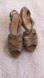 Sandals are preowned in good condition but the back of the heels have a lot of nicks and marks. See photos.