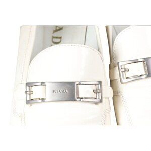 Prada Women's Off-White Leather Loafers With Silver Buckle Size 37.5 (US 7)