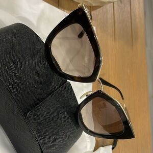 Prada Women's SPR53S SPR/53S Sunglasses in brown. Lightly used, good condition. Rectangular cat eye with light/medium brown lens.