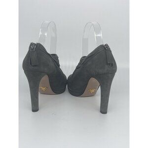 Prada Womens Suede Ankle Booties Gray Sz 37.5 US 6.5 Designer Casual Boots Shoes