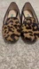 Elegant Prada loafers with a striking leopard pattern. Tan and black design for a bold look. Perfect for stylish outings.