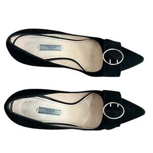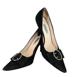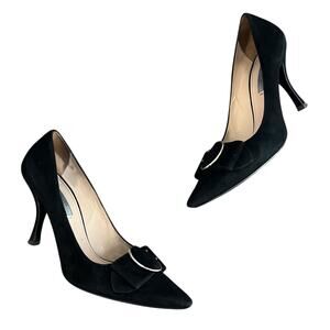 Prada Womens Vintage Y2K Camoscio Nero Black Suede Point Toe Silver Buckle Heels