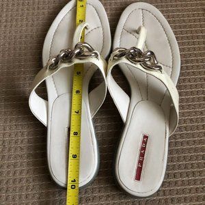 Prada Women's White Patent Leather Thong Sandals - Size IT 38. In very good condition with signs of use.