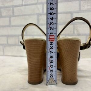 Please see condition - no markings on suede or wood block heels but straps are a bit bent from storage