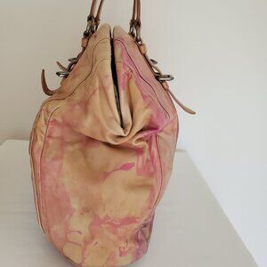 Prada XL soft nappa leather bag beige peach purple Pink double handle Tote dyed