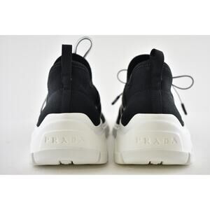Prada XY Logo Sock Black White Knit Flat Lace Up Tie Pull On Trainer Sneaker 35