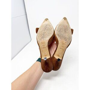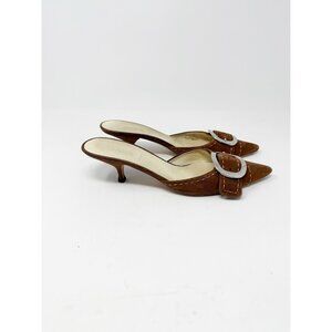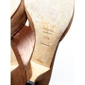 Prada Y2K Brown Suede Buckle Pointed Toe Kitten Heels Mules Slip On Size 39.5