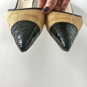 Prada Y2K Vintage Raffia Cap Toe Croc Emboss Kitten Heel Pointed Toe Mules 38.5