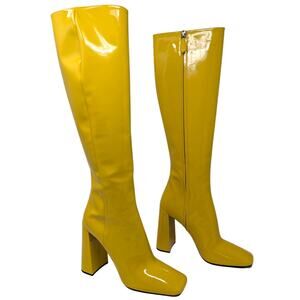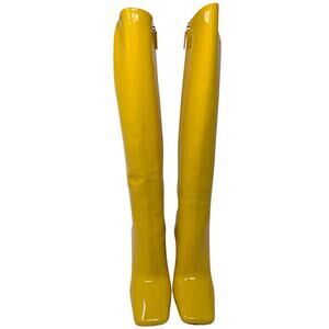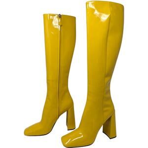 Prada Yellow Patent Leather Knee High Block Heel Boots Women’s 40 10 US