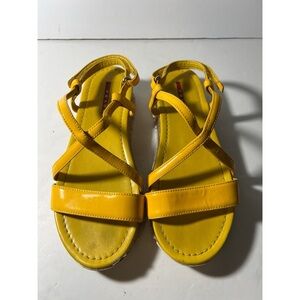 Bright yellow strappy sandals with a stylish design. Perfect for summer outings. Some peeling