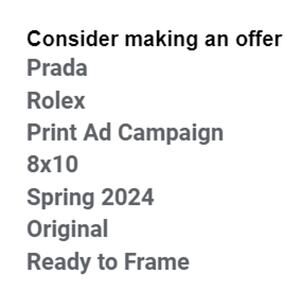 Prada and Rolex Print Ad Campaign Spring 2024 8x10 Ready to Frame Original