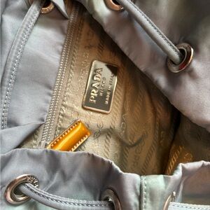 Light blue/gray Prada backpack. Comes in prada bag. Lightly used. Has 1 small blemish on the back. Roughly 2 feet long and 1 foot wide.