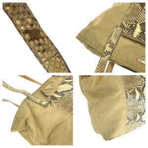 Prada Tessuto python leather tote bag triangle brown nylon shoulder Includes a Certificate of Authenticity!