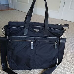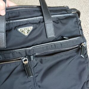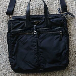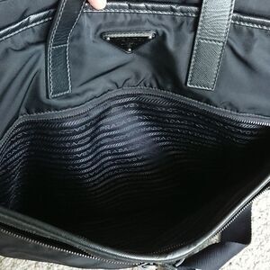 The accessory, with an internal compartment and two front pockets, is accented with details in Saffiano leather, calf leather of the highest quality defined by a crosshatch texture and wax finish that identifies with traditional Italian leather goods production.