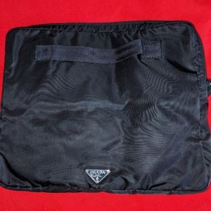 Prada laptop carrying case with strap to fit over luggage handle. zipper top name lining also comes with original product dust cover