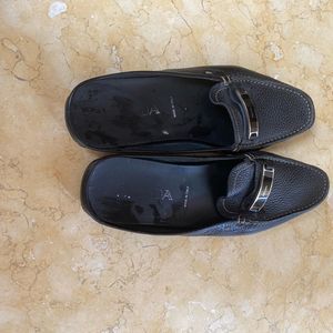 Prada black leather mule with silver hardware in size 10. Gently worn.