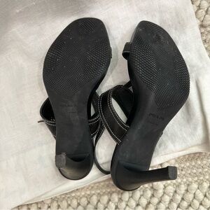 In good condition, has a few minor flaws. Flaws are listed here, small scratches on the back heels, small scuff on toe area, the bottom heel cap has some damage and will probably need to be replaced soon (very easy to fix! You can get heels caps on Amazon) all flaws are shown in photos