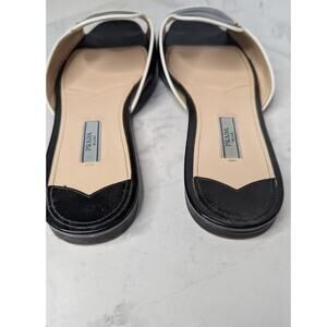 Prada black slip on flats mules logo designer career trendy size 40. US size 10