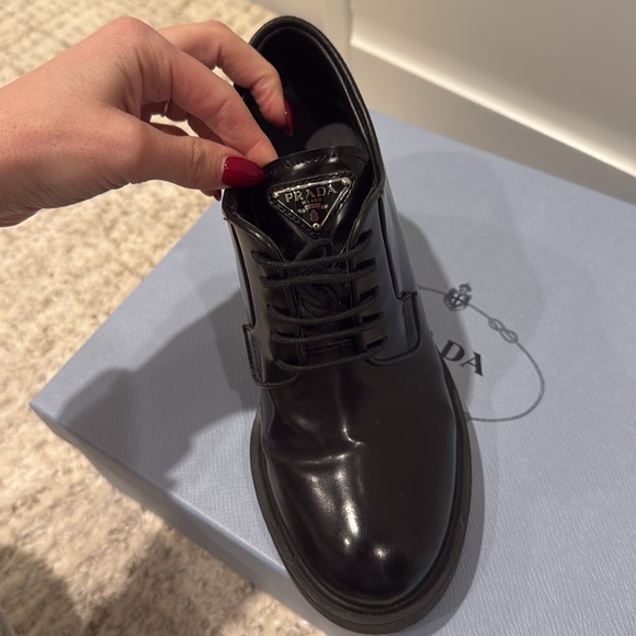 Prada triangle logo on the tongue