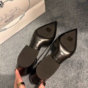Prada brushed leather cut out pumps. Worn once because too big on me. Minor scuffing on bottom. Box and shoe bags included. Size 39.5