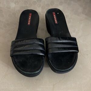 Prada canvas and wedge slides size 37.5 (US 7.5)