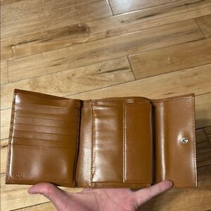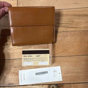 Prada caramel brown leather compact trifold wallet comes with original COA card